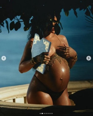 Rihanna hamileyken çekildiği üstsüz fotoğraflarını paylaştı.