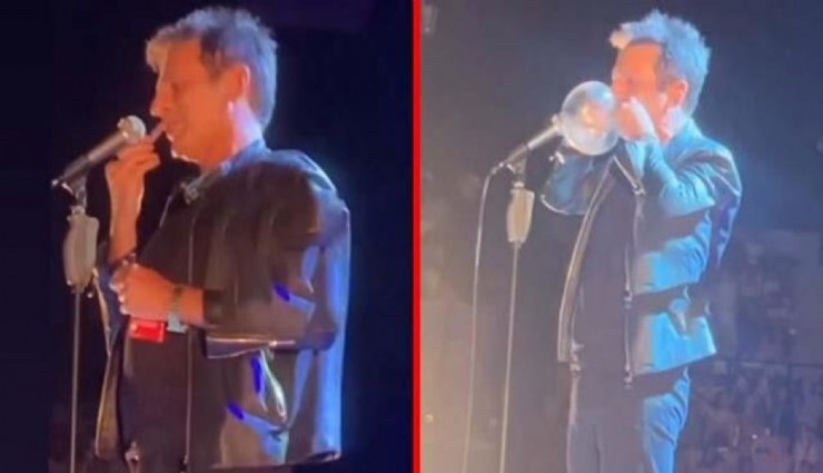 Kadın hayranının sahneye bıraktığı ruj ve kondoma şakayla karşılık veren Teoman ise önce ruju sürdü sonra da kondomu şişirdi.