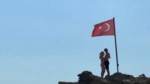 Yereli, sevgilisiyle Türk bayrağının altında öpüştüğü kareleri sosyal medya hesabından paylaştı.